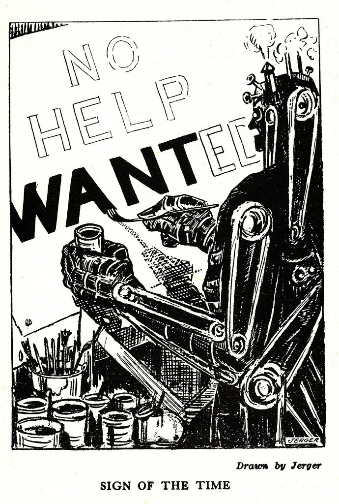 Incorporated in the self-image of most Westerners is the Protestant Ethic that only hard work and doing things are really serious activities. Moreover, in industrial societies "work" is implicitly defined as paid, as done in an employer's time rather than in one's own "leisure" time, and at the employer's behest rather than for one's own purposes. Hence the confusion over whether housewifery is work, or whether self-directed and creative ways of earning one's bread (such as writing novels or throwing pots) are "real" work. Given these views, massive unemployment could be more soul-destroying than the most repetitive of factory jobs—even though people's "leisure" time for creative hobbies (sic) would be correspondingly increased. Although a shortening of the labor day may not reduce work in the same proportion (since it may become more intensive), certain types of unskilled and semiskilled work might be largely taken over by machines. Were the time currently spent on drudgery to be devoted to varied, creative, and autonomous work that is satisfying in itself (a state of affairs that presupposes corresponding changes in the social definition of work), unemployment would not result and people would be more fulfilled in their working lives. Otherwise, and to the extent that socially accepted ways of thinking about "work" did not change quickly enough, communities influenced by the Protestant Ethic would experience a deep social malaise. For if a man has been brought up to see himself as an industrious provider for his family and the community, enforced "leisure" may not only bore him (a boredom that could be partly alleviated by the home terminal), but may cause him destructively to define himself to himself as a social parasite. (Artificial Intelligence and Natural Man)A recent article echoes these words written 40 years ago, and draws our attention to boredom, the hidden risk of automation that no one is talking about, which leads (among other things) to significant health problems; the overall argument of the article is that "a less effortful, more efficient life may not be a better life." With a little more dramatic impact, one can say that maybe we should not "fear zombie AI [but instead] worry about humans who have nothing left to do in the universe except play awesome video games. And who know it."